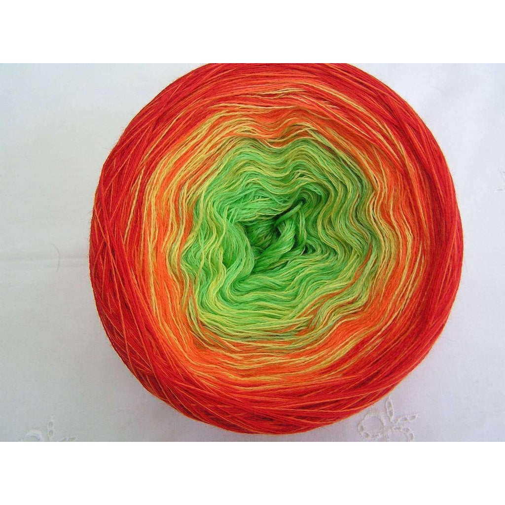 Garnet er oprullet, fra fabrikken på 2 forskellige måder. Derfor kan farveskiftet være omvendt på nogle ruller, det har ingen praktisk betydning, da man selv vælger om man vil starte fra midten eller ude fra. Resultatet er det samme. Begge typer ruller kan man se på billederne.