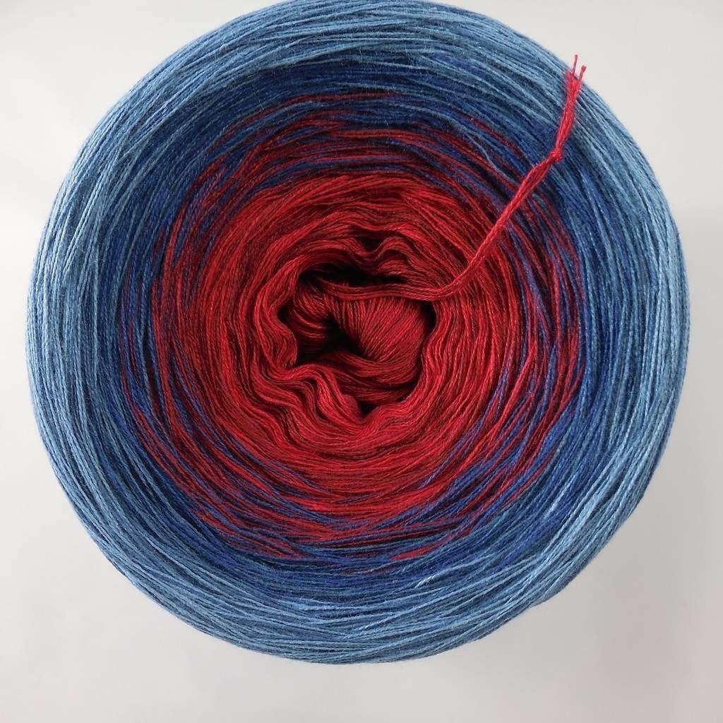 Garnet er oprullet, fra fabrikken på 2 forskellige måder. Derfor kan farveskiftet være omvendt på nogle ruller, det har ingen praktisk betydning, da man selv vælger om man vil starte fra midten eller ude fra. Resultatet er det samme. Begge typer ruller kan man se på billederne.